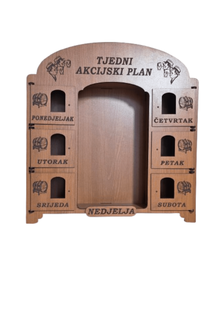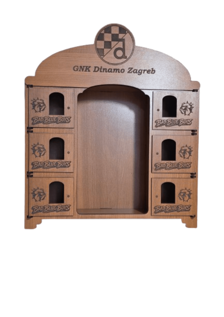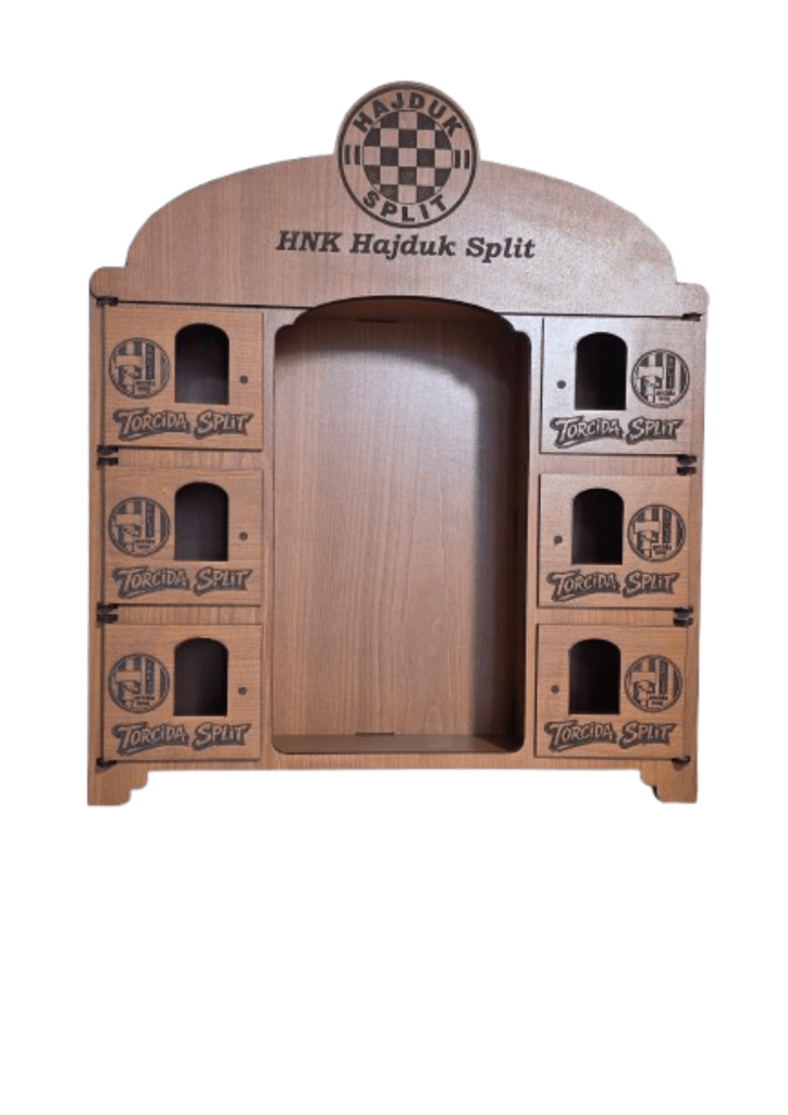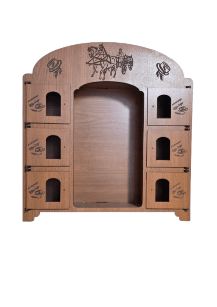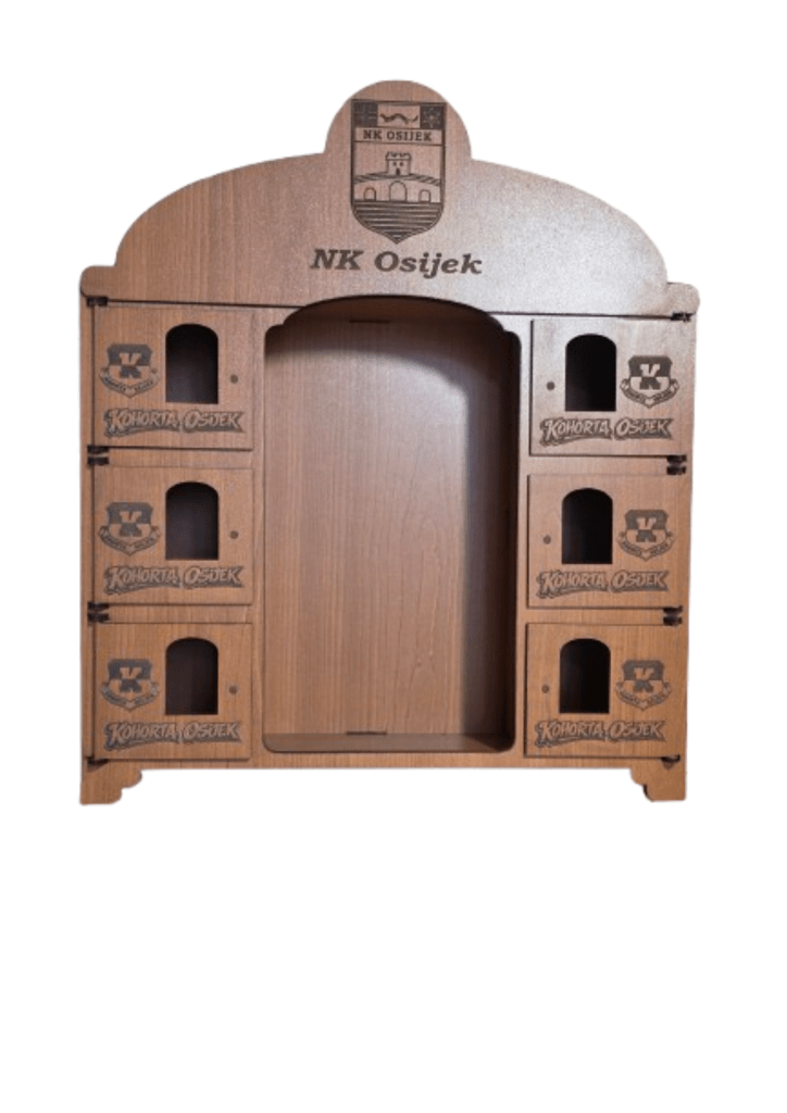 Kredenac za čuturu izrađen je tako da iza svojih 6 vratašca skriva čašice, dok se u sredini nalazi prostor predviđen za bocu. Ukratko: sve je na svom mjestu, uredno složeno i spremno za trenutke kad se kaže “ma samo ćemo jednu”.