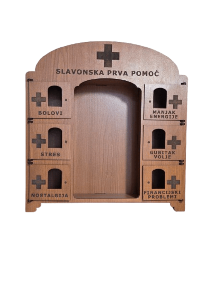 Prostor za bocu prilagođen je našim bocama, ali postoji mogućnost kupnje i bez boce. Svaki kredenac priča svoju priču – nekad ozbiljnu, nekad emotivnu, a vrlo često i onu zbog koje se ljudi prvo nasmiju pa tek onda otvore vratašca. Moguća je izrada motiva, teksta ili njihove kombinacije po želji, tako da svaki komad može biti potpuno personaliziran.