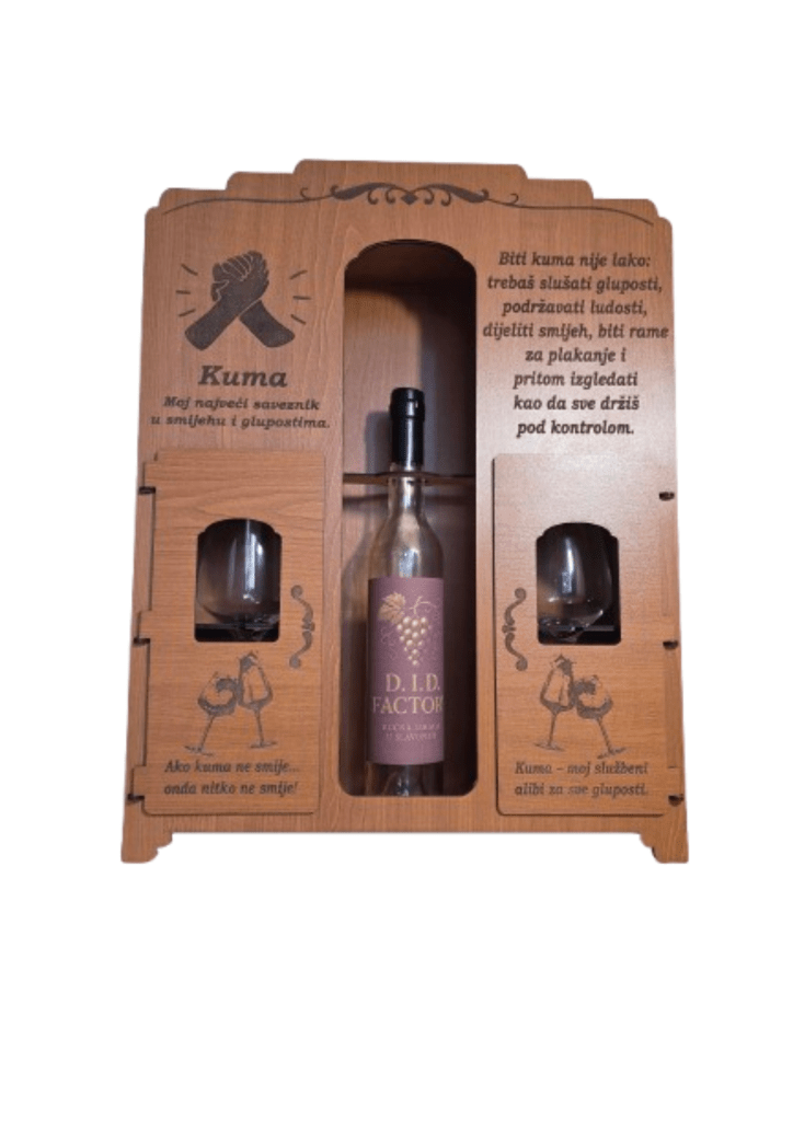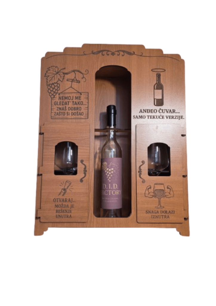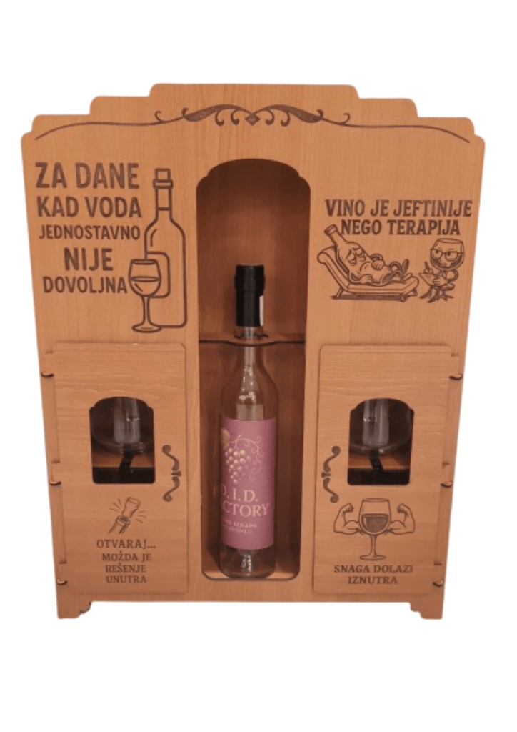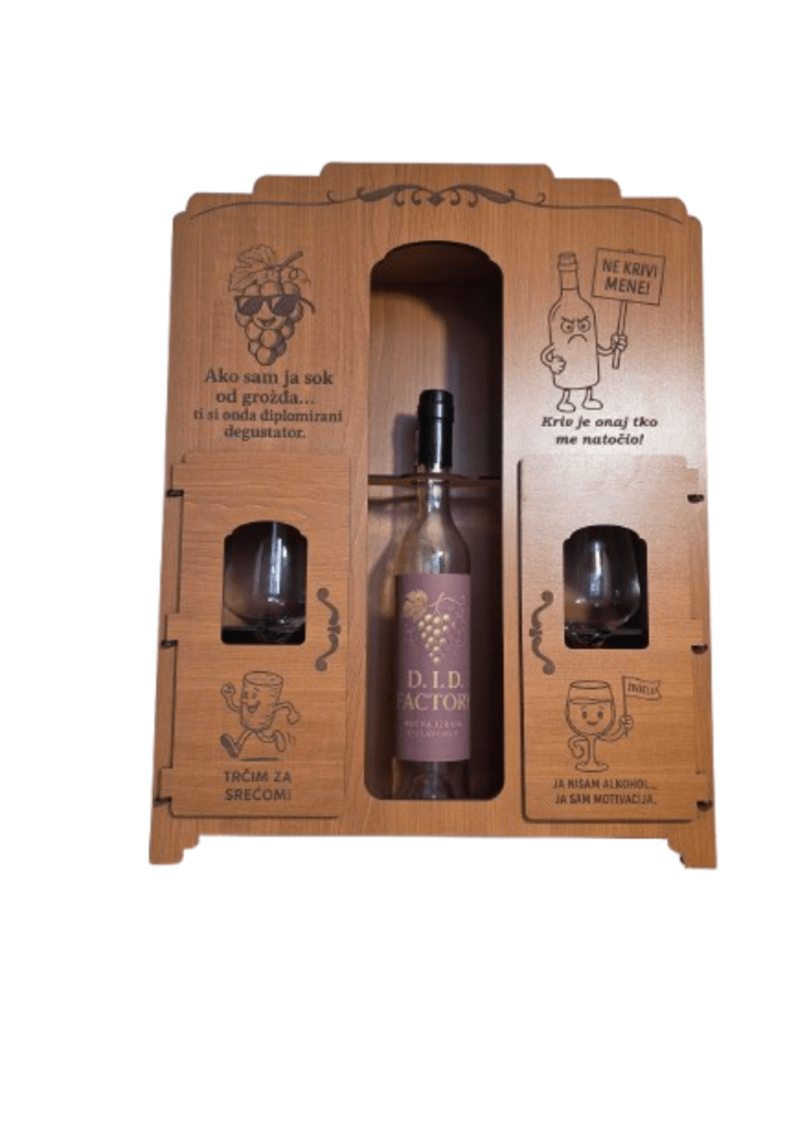 Važno za napomenuti: boca ne dolazi uz kredenac, jer taj dio ipak prepuštamo vama na izbor. Netko voli vino koje se čuva za posebnu priliku, a netko ono koje nestane istu večer. Čaše za vino dolaze uz kredenac.
