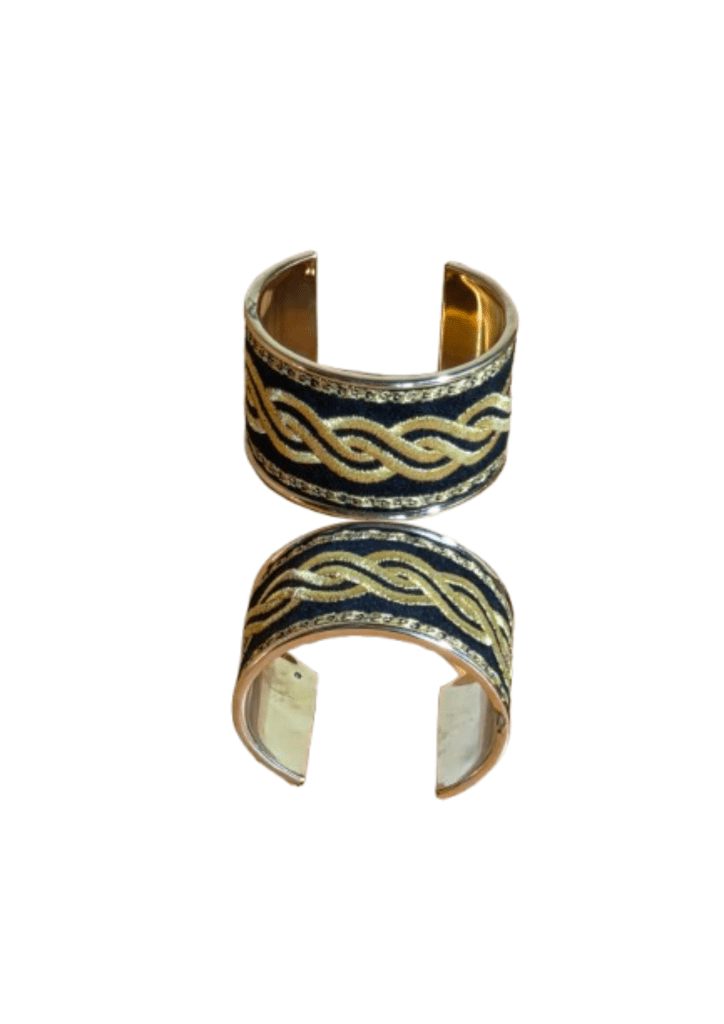 Ove narukvice rađene su zlatovezom na limu, i upravo je to njihova posebna fora. Za razliku od klasičnih varijanti, ovdje je zlatovez montiran na lim koji se lako prilagođava obliku ruke, pa narukvica lijepo sjedne i ne ponaša se kao da vodi svoj privatni život na zapešću.