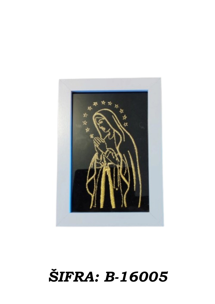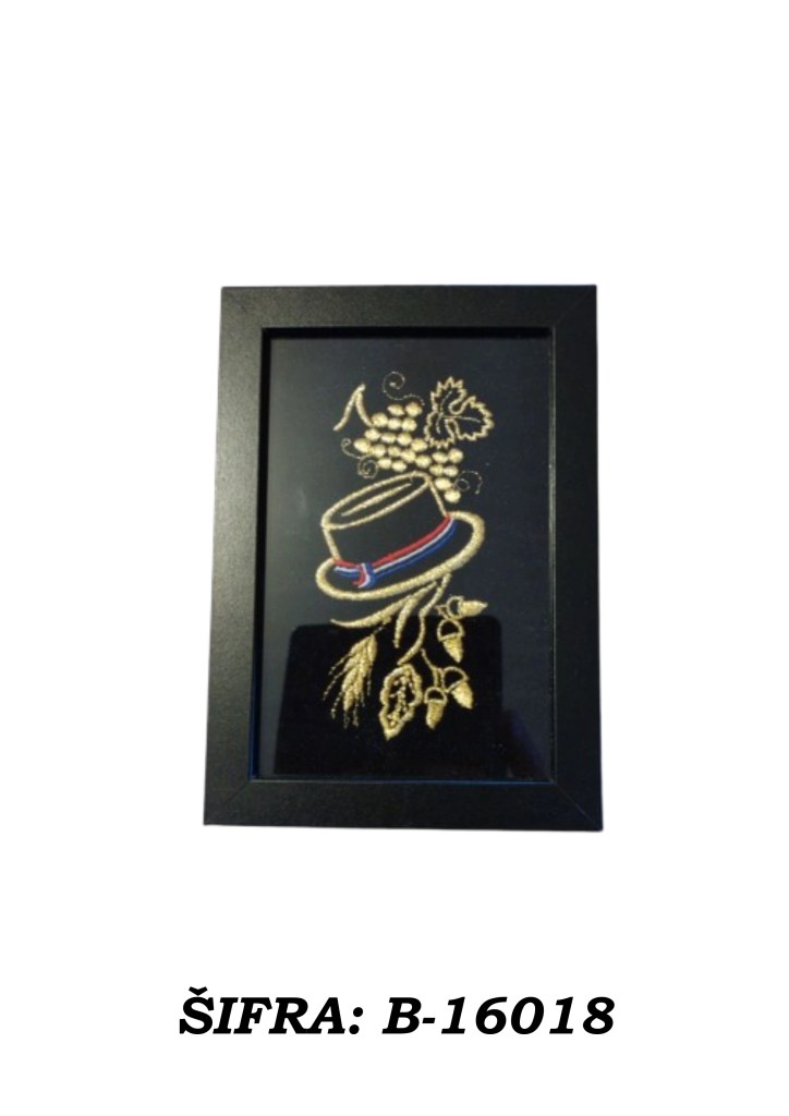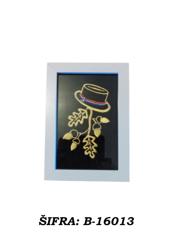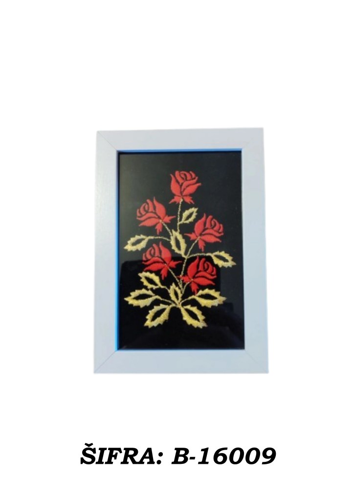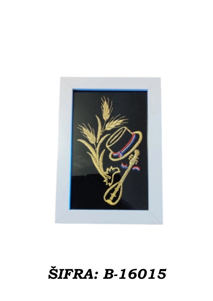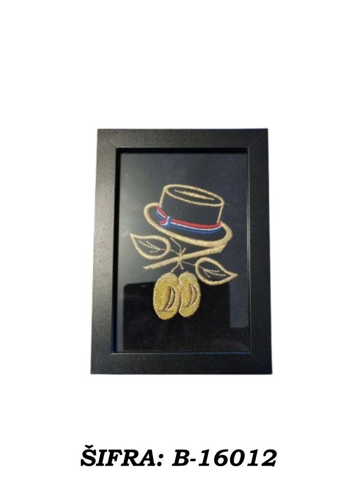 Ove slike rađene su zlatovezom i dolaze u praktičnoj veličini 10 × 15 cm, dovoljno male da stanu gotovo svugdje, a dovoljno upečatljive da ne izgledaju kao da su se slučajno našle u prostoru. Mogu se postaviti samostalno na policu, komodu, stol ili vitrinu, a mogu se i objesiti na zid ako želite da se ponašaju ozbiljno kao prava mala umjetnička djela.