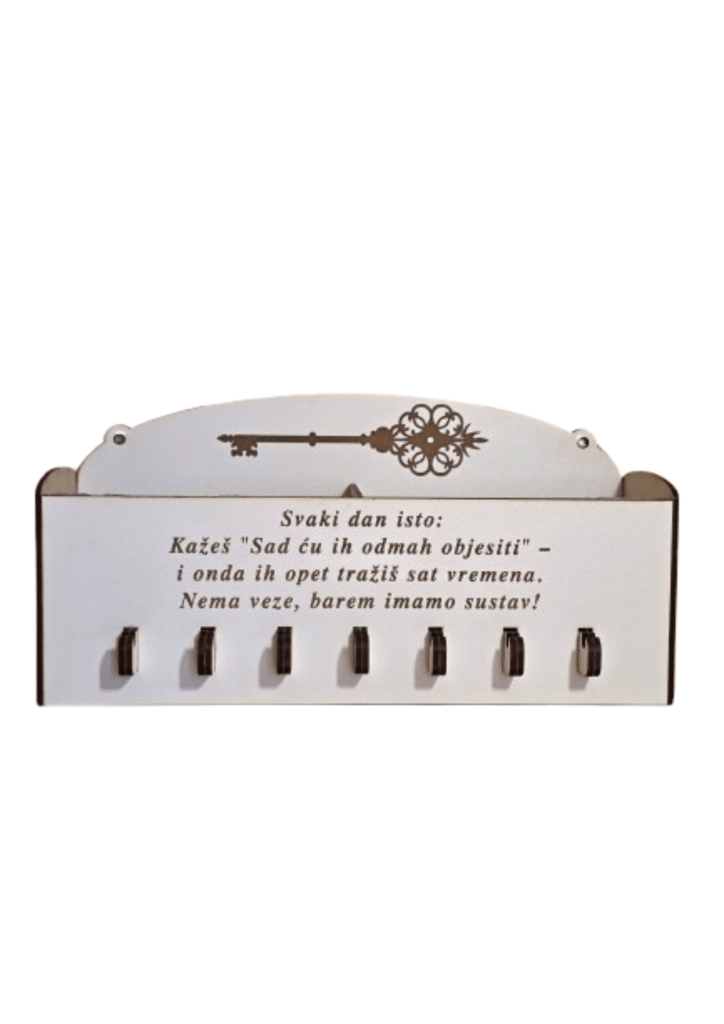 Vješalica za ključeve izrađena je od duplih HDF materijala radi dodatne čvrstine, tako da nije rađena za “dok traje”, nego da stoji, služi i trpi godine korištenja bez problema. Ukratko: napravljena je ozbiljno, da traje praktički vječno.